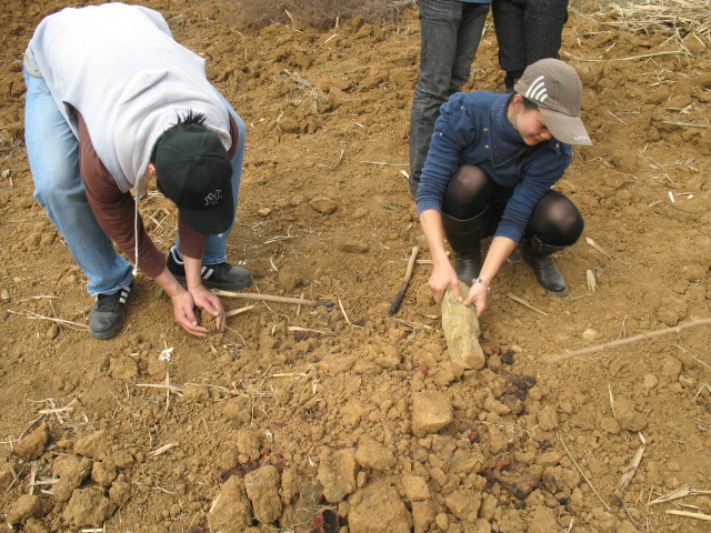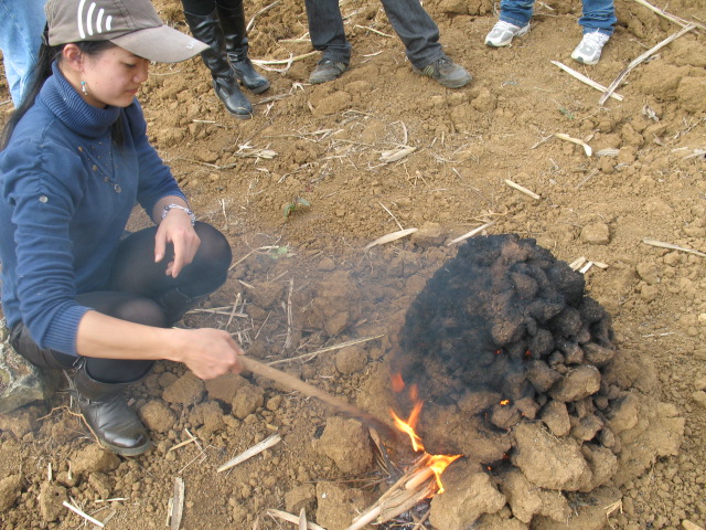 刚进家门就闻见菜香的味道了,原来妈已经差不多准备好了,弟也刚下班回来更热闹了,大家开心的大开杀界了吃!吃饱喝足,该是去烤红薯的时候了,可还是没找到地方,后来建议我们先去考察地形,七哥小休一会儿,我和宾还有两个小妹妹去,不一会我们就回来了,有两个可行的地方还不错,出发!现在都是刚刚砍完甘蔗的田地,要真找个翻了土的还真是难啊,我们找了一个山脚下的地方开始动工了,我和七哥还有宾负责搭,其他人负责找柴火和拣石头等会用。搭红薯窑是需要技术的,不然就很容易塌下来从新开始,好在我们都比较有经验,先找好风口,要不等烧的火的时候烟就直往自己身上扑了,再用大块的泥土垫底然后用比较细长的泥土慢慢往上搭,搭的时候我们连呼吸都很小心,生怕会塌下去,好不容易要封顶了,大家好激动啊,都屏住了呼吸,最后的一小块泥刚小心的放好,七哥就嚷起来了:“鸣炮!伟大的建筑物诞生了,我们都是工程师,哈哈!”说实话我们出奇的顺利完成了,以前没有塌那么几次是搭不起来的,看来今天运气真的不错哦。开始烧火了,周围的干树枝还真不少,还有遗留在田里的玉米干支,火顺着风向烧得很旺,大家都很开心,这时候就开始玩起猜脑筋急转弯的游戏了,在一片笑海里我已经把泥土块烧得很通红了,准备封口放红薯了,大家又开始忙碌了,我把红薯先从口那里进去了一些,剩下的就得从顶那里放了,这个时候更加的小心了,因为要先在窑顶那里开个小口,弄不好全塌了就白费工夫了,好紧张哦,还好宾的技术还可以,他得意的说消防队出来的肯定是没问题的啦,这时候大家的动作要非常快,而且要配合好,不然那些热气跑光了就糟了,七哥早已举起了石头要砸了,我一声令下快,大家七手八脚的忙着盖好土,见哪里冒烟就往上盖土,好紧张的画面啊。等盖好土后还有一段时间才可以挖出来吃,我们大家就围坐那里开始推测红薯会不会熟啊,或则刚才太用力会烂掉哈哈,宾忙说十分钟后开始挖吧,接着大家又说了一些笑话,还没多久呢,宾就说时间到了,我笑着说:“在等会,不然吃到半生不熟的晚上睡觉就打屁丈了哈哈”惹得大家又是一阵笑声,七哥也发话了:“快去找硬的树枝,不然等下挖不到没的吃可别哭哦呵呵”就这样时间一分一秒的过去了,终于可以开挖了,大家分好方向,开始:“挖!”就在我们争先恐后的用树枝轻轻挖的同时,红薯的香味已经扑鼻而来了,大家咽了咽口水继续,紧接着一个个饱满的红薯伴着飘香露了出来,七哥眼疾手快忙抓了一个出去生怕被抢了去,妹妹心疼得叫起来“等会烫着怎么办啊!要小心啊 !”(真是的人长得帅就是被关注)我们笑着也开始抢了,七哥急了赶紧在中间划了一条线,说只能在这个范围之内挖,我们更急了,动作加快了,红薯也一个一个的被我们挖了出来,突然又是一声尖叫“哎呀!这个红薯被我刺穿了”“谁叫你这么用力挖啊!”“等会那个你吃完啊!”小妹妹很委屈的说“你们都在抢,等会我没有吃的怎么办啊”又惹得我们一阵笑声。红薯终于挖出来完了,大家也顾不上手有多脏就开始吃起来了,哇,这样的红薯吃起来又香又甜的,好象又回到的儿时的时光……