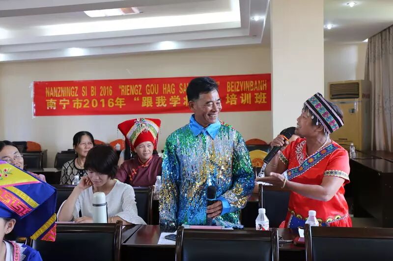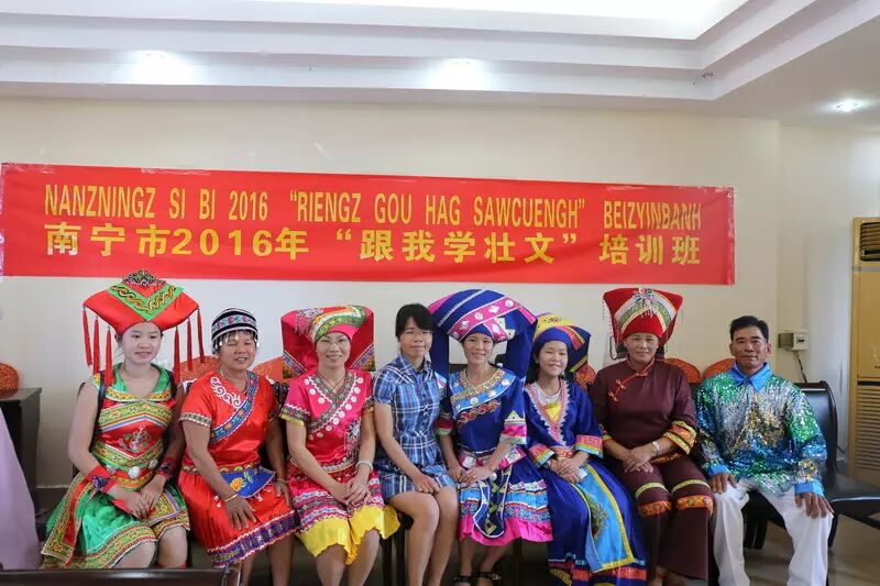 为掌握当前南宁市壮语文在社会公共领域的使用情况,切实保障少数民族的合法权益,推动《南宁市壮文社会使用管理办法》贯彻执行,更广泛地为各少数民族群众提供民族语文公共服务,推进南宁创建全国民族团结进步示范市等工作提供可供参考的意见建议和工作思路,2015年南宁市少数民族语言文字工作委员会在全市范围内开展壮文社会使用问卷调查,2016年9月完成问卷调查并形成调研报告。 南宁市民宗委、南宁市民语委主办的南宁市2016年第1期“跟我学壮文”培训班(第1期)结业典礼。 南宁市2016年“跟我学壮文”培训班(第1期)的武鸣山歌手合影。 本次调查编制使用《南宁市壮语文使用情况调查问卷(壮族卷、其他民族卷和司乘人员卷)》,其中壮族卷是为壮族受访者设制的,其他民族卷是为非壮族受访者设制的;司乘人员卷是为司乘人员设制的,目的是了解司乘人员对公共交通领域壮语文使用情况的态度。本次调查地点覆盖南宁市各区(县);调查对象由机关、企事业单位职工,城乡居民,在校师生,司乘人员及乘客代表等组成;调查内容主要包括被调查者的基本情况、壮语言文字的一般使用情况及公共交通领域和影视广播领域的壮语文使用情况等;调查采用分层抽样和随机抽样相结合的方法抽取样本。本次调查共发放问卷1350份,回收有效问卷1250份(壮族605份,其他民族495份,司乘人员150份),回收率为93%。